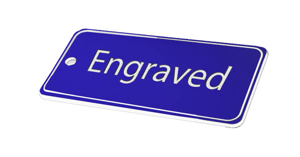 50x100mm Key fob rectangle - White text on blue