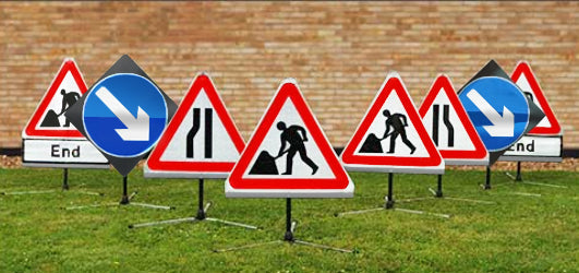 Chapter 8 Roll-Up Sign Kit (8x 750mm reflective signs+tripods in 2 bags)