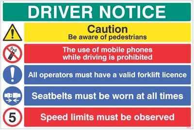 Driver notice Be aware of pedestrian, 5mph…