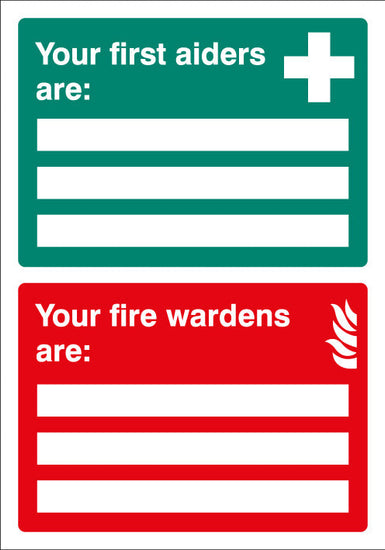 First Aiders/Fire Wardens are Adapt-a-sign 215x310mm