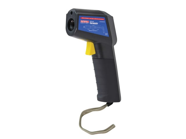 The Faithfull Infrared Thermometer is ideal for use in electrical, automotive and catering industries. This trigger operated non-contact thermometer features a Class II Laser emitter and a digital LCD display with blue backlight. When the trigger is pressed, the thermometer emits a laser beam to target the area where you want to take a measurement. It will display present and maximum reading simultaneously and the last measurement reading is held on the display automatically after releasing the trigger. The display can be set to either Centigrade or Fahrenheit.
