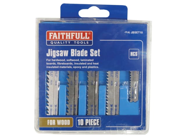 The Faithfull T shank Jigsaw Blade Set is the ideal companion for any jigsaw, this 10 piece set contains 6 alternative types of blades for a wide variety of woodcutting applications.