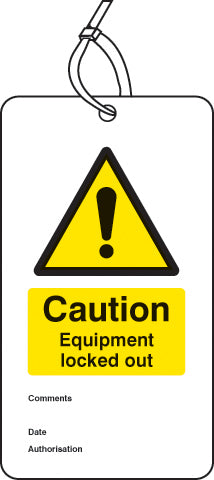 Lockout Tag - Caution Equipment locked out (80x150mm) Pk of 10