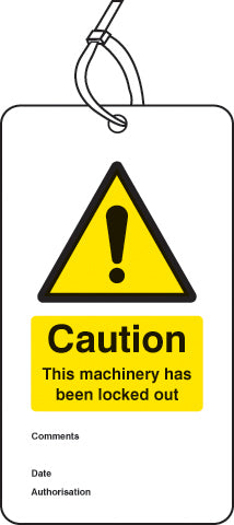 Lockout Tag - Caution this machinery has been locked out (80x150mm) Pk of 10