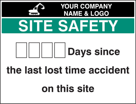 Lost time accident board & 2 sets of numbers c/w logo