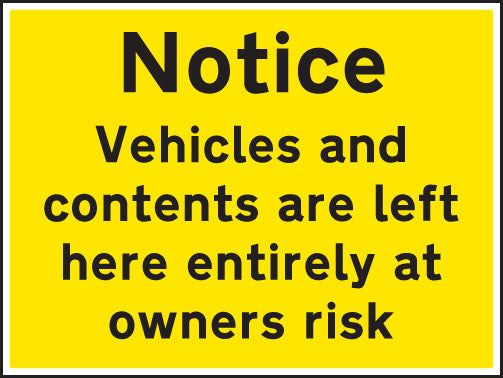 Notice vehicles and contents left at owners risk