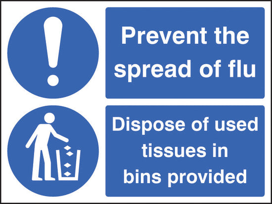 Prevent the spread of flu - Dispose of used tissues in bins provided