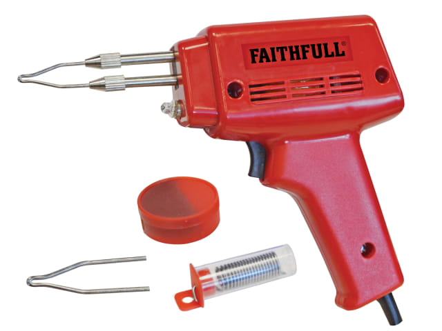 The Faithfull SGK Soldering Gun is lightweight and has a heat resistant handle. Ideal for soft soldering metal alloys, brass and copper. The working temperature is reached quickly so you get a good soldered joint on any workpiece.