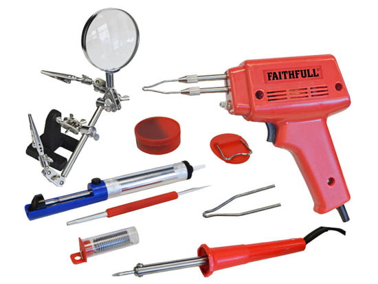 The Faithfull SGKP Soldering Gun is lightweight with a heat resistant handle and suitable for soft soldering metal alloys, brass and copper. The working temperature of 400°C is reached quickly so you get a good soldered joint on any workpiece.