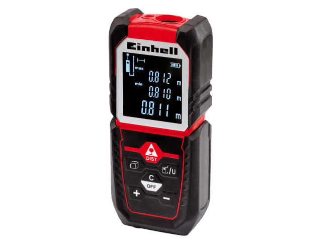 The Einhell TC-LD 50 Laser Measuring Tool is a practical and precise tool for measuring distance, area and volume. Variable settings allow measuring from either the front edge, rear edge or stop plate of the tool.